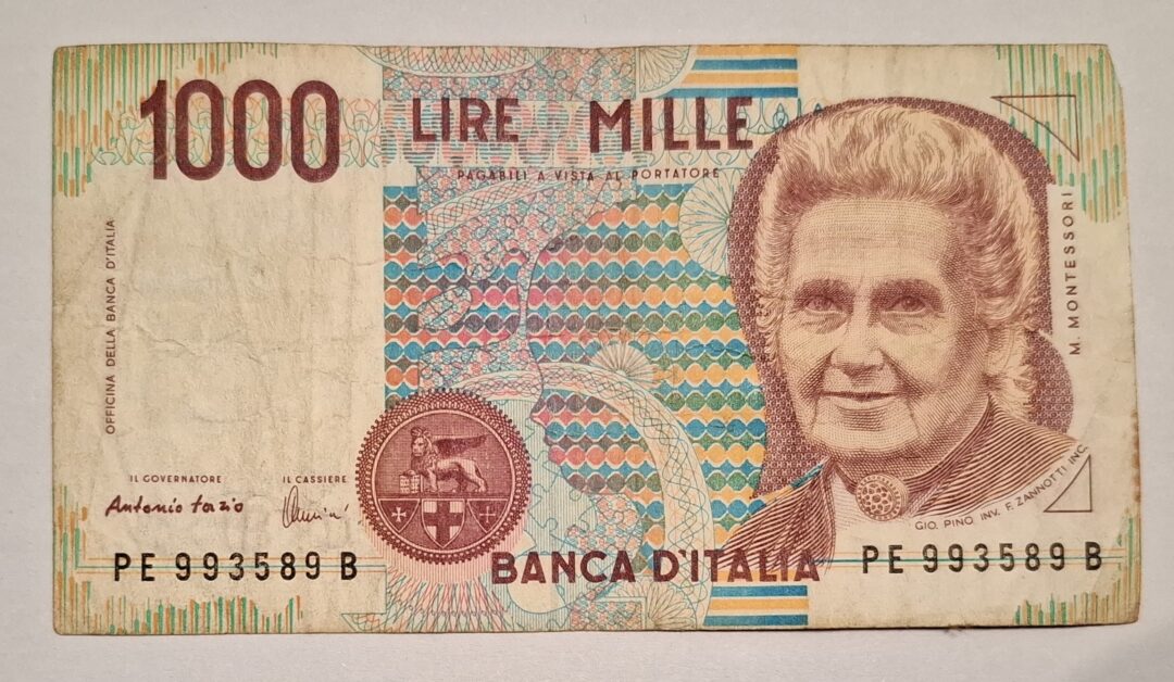 Stary Banknot kolekcjonerski Włochy 1000 lire lirów 1990
