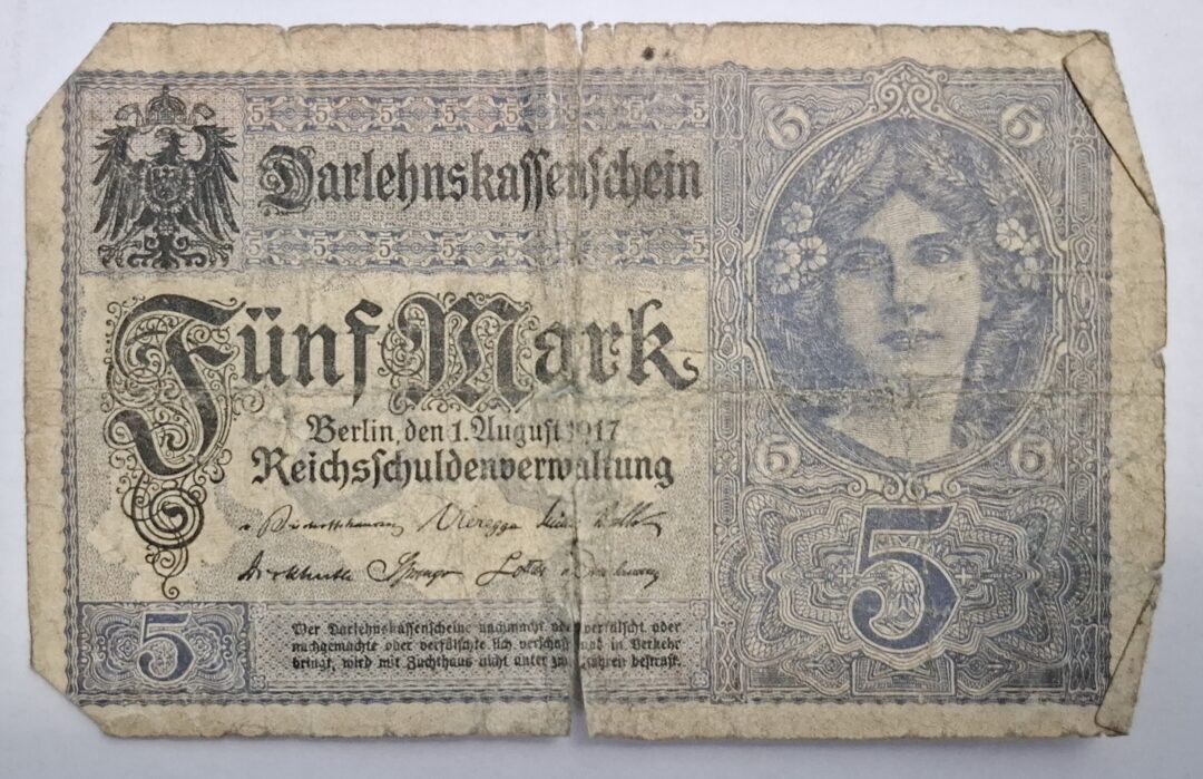 Stary Banknot kolekcjonerski Niemcy 5 marek 1917