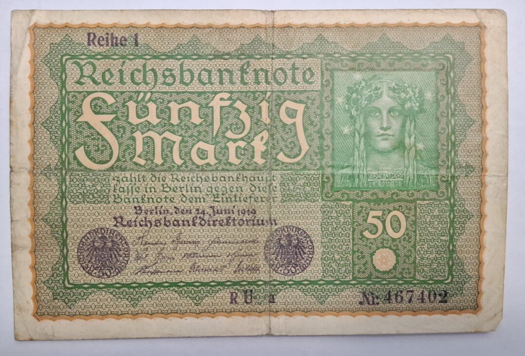 Stary Banknot kolekcjonerski Niemcy 50 marek 1919