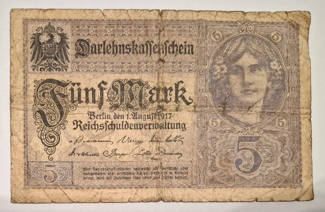 Stary Banknot kolekcjonerski Niemcy 5 marek 1917
