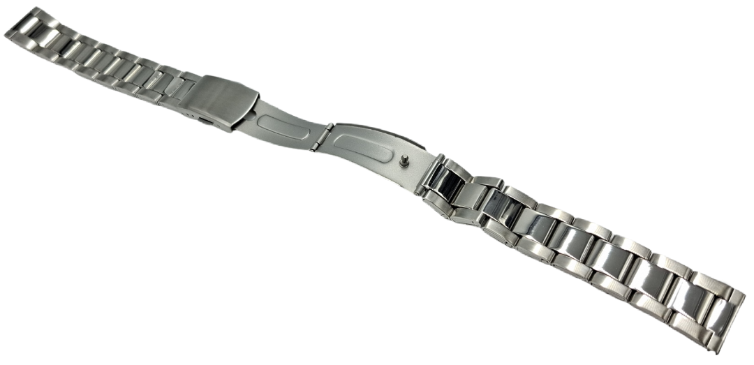 Oferta dotyczy eleganckiej bransolety do zegarka widocznej na zdjęciach. Wykonana jest ze stali nierdzewnej. Jej grubość to 4 mm. Szerokość mocowania to 18 mm. Idealnie nadaje się na prezent. Długość całkowita bransolety to 19,8 cm. Natomiast same zapięcie ma długość 2,5 cm i szerokość 1,8 cm. Otwiera się je naciskając dwa przyciski jednocześnie po obu stronach.