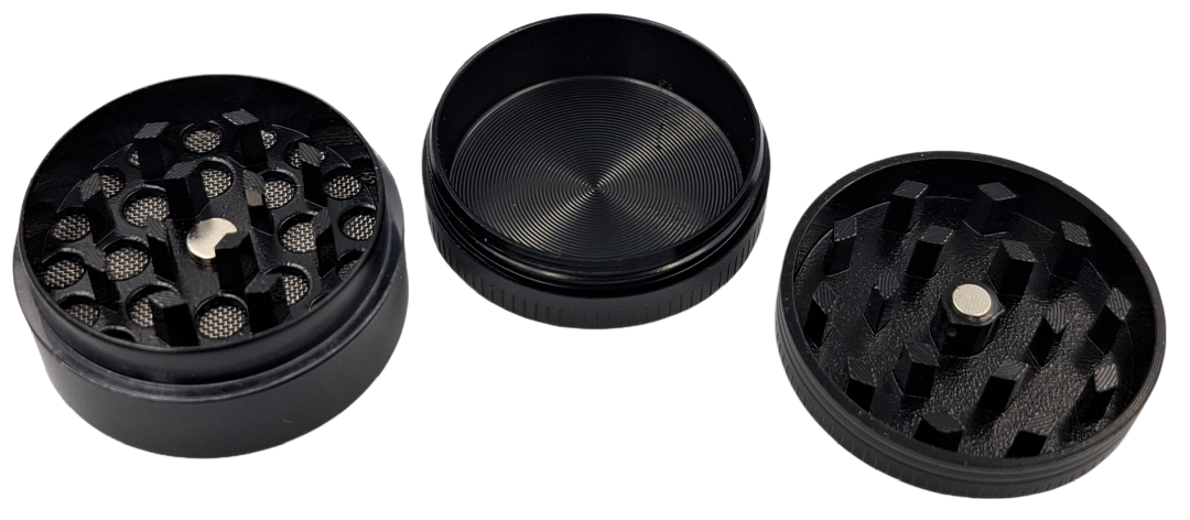 Oferta dotyczy metalowego młynka do tytoniu bądź zioła. Metalowe ząbki rozkruszą każdy duży kawałek. Górna część mocowana jest na magnes. W środku młynka jest sitko. Dolna część gdzie w pada rozkruszony susz jest odkręcana. Wysokość młynka to 2 cm, a średnica 3 cm. Jest mały więc można go nawet schować do kieszeni.