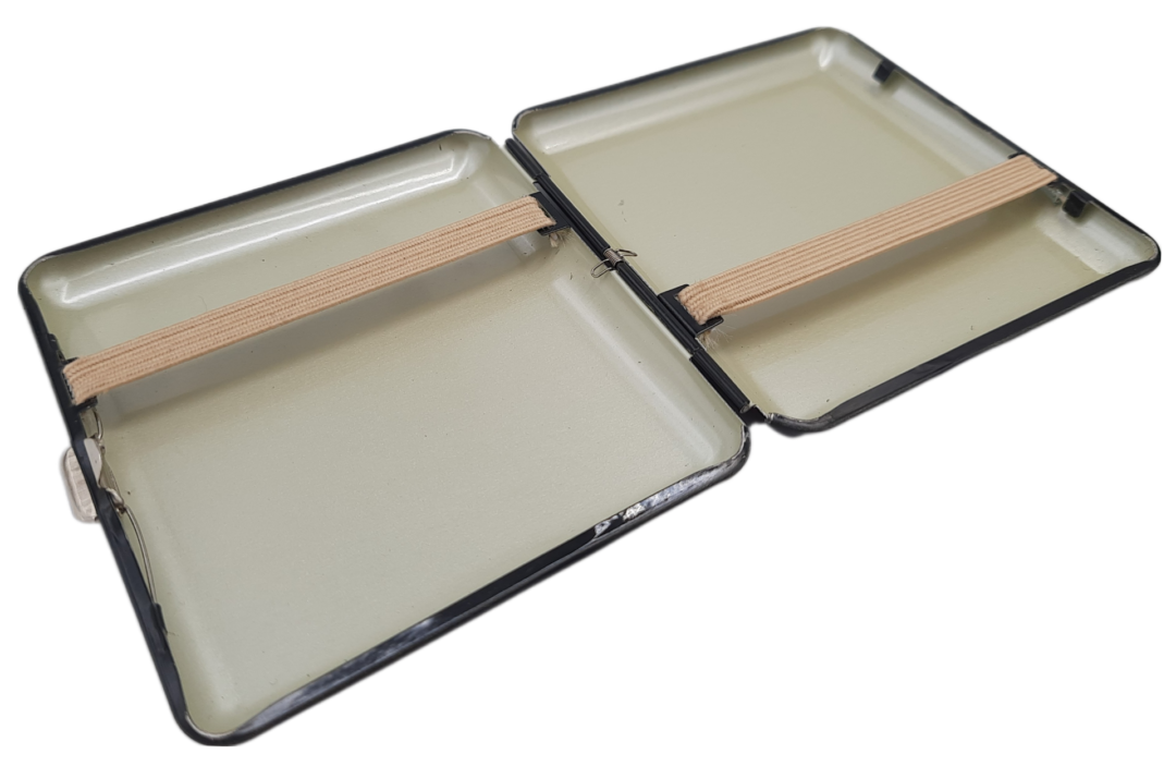 Oferta dotyczy papierośnicy widocznej na zdjęciach. Papierośnica mieści 20 papierosów i jest metalowa. Posiada gumki dzięki którym papierosy są unieruchomione i nie latają w czasie przenoszenia papierośnicy. Idealnie nada się na prezent. Wymiary papierośnicy to 9×9,5×1,7 cm.