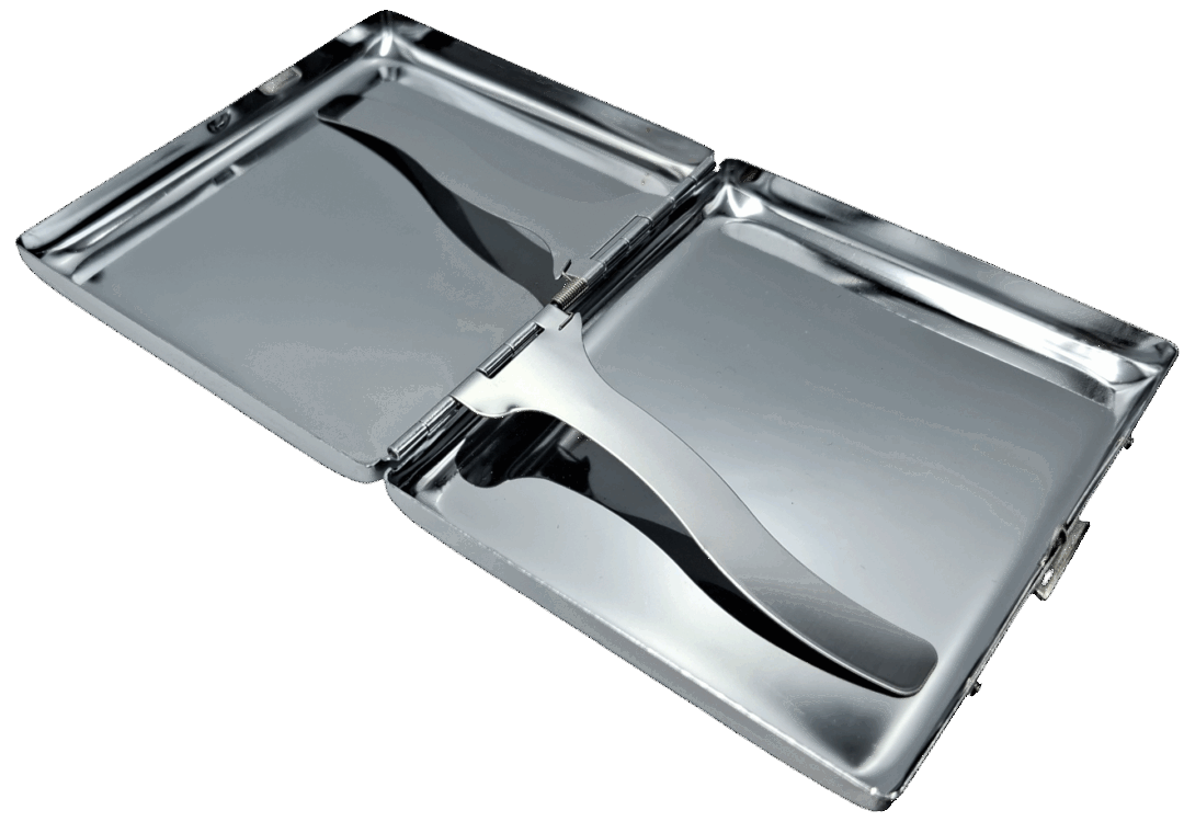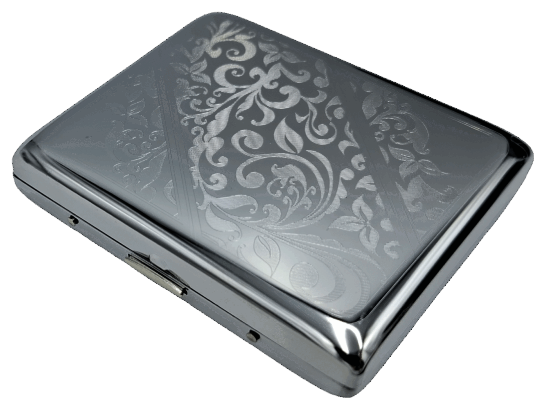 Oferta dotyczy prezentowej papierośnicy widocznej na zdjęciach. Wykonana jest z metalu i mieści 20 papierosów. Ma łapki dzięki, którym papierosy są unieruchomione i nie latają w czasie przenoszenia. Papierośnica umieszczona jest w eleganckim pudełku z ładną wyściółką. Idealnie nada się na prezent. Wymiary papierośnicy to 9,5x8x1,8 cm. Natomiast wymiary pudełka to 15,5×12,5×3,8 cm.