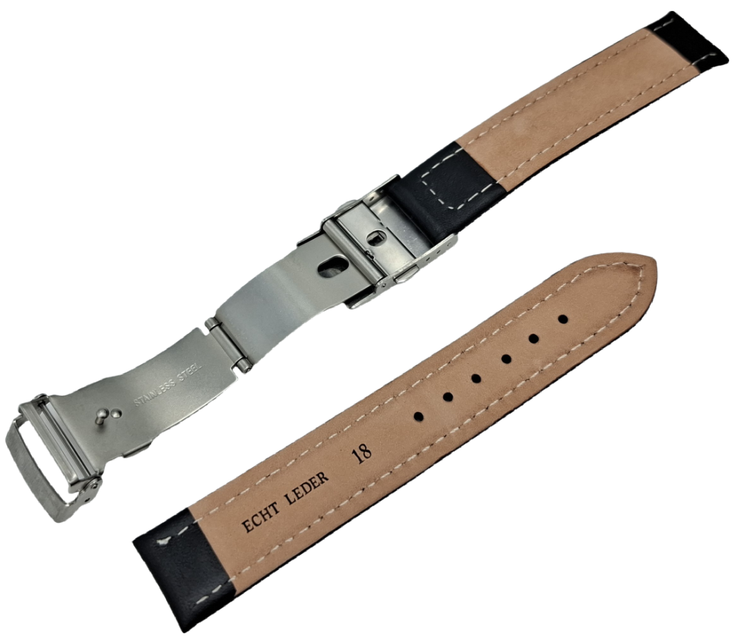 Oferta dotyczy eleganckiego paska do zegarka widocznego na zdjęciach. Wykonany jest z prawdziwej skóry cielecej. Jego grubość to 4 mm. Szerokość mocowania paska to 18 mm. Idealnie nadaje się na prezent. Mały pasek ma długość 10,5 cm z klamrą. Natomiast długi pasek ma 11,5 cm długości. Wymiary zapięcia to 3×2 cm. Wykonane jest ze stali nierdzewnej.Otwiera się je naciskając dwa przyciski jednocześnie po obu stronach po uprzednim podniesieniu blokady.