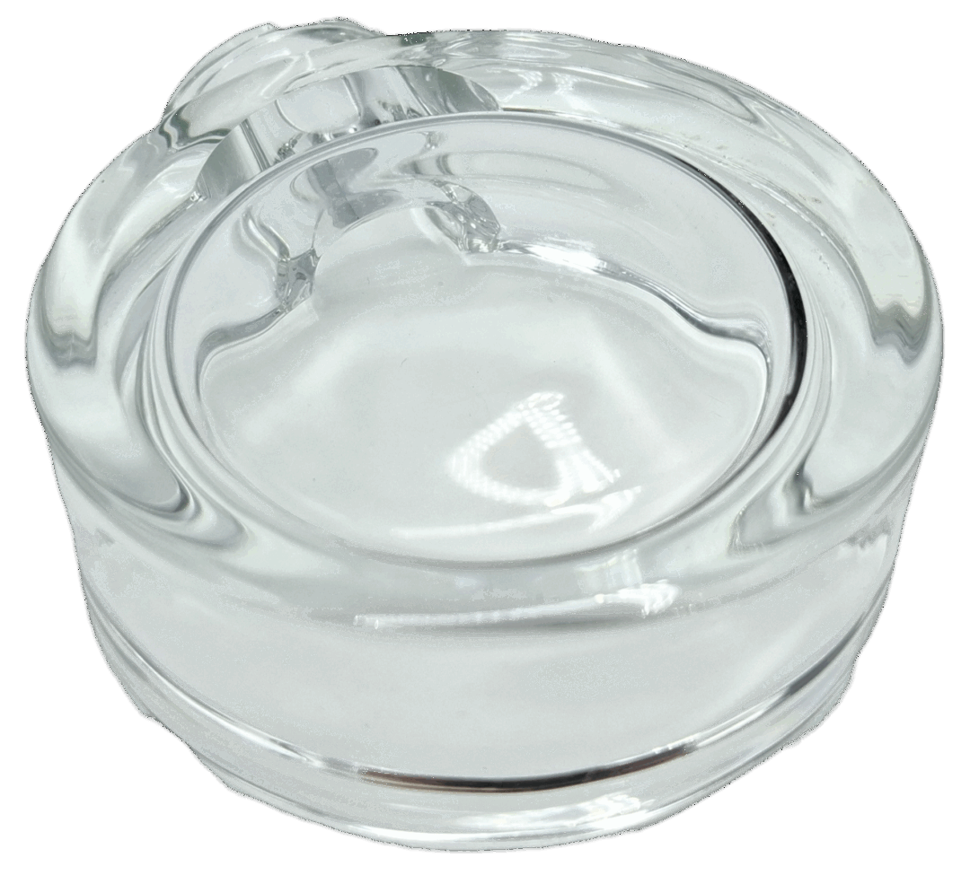Oferta dotyczy popielniczki na jedno cygaro. Wykonana jest ze szkła. Posiada jedno wyprofilowane miejsce na odłożenie cygara. Średnica bez miejsca na cygaro to 9 cm. Natomiast z miejscem jej długość to 11,5 cm. Wysokość popielniczki to 3,2 cm.