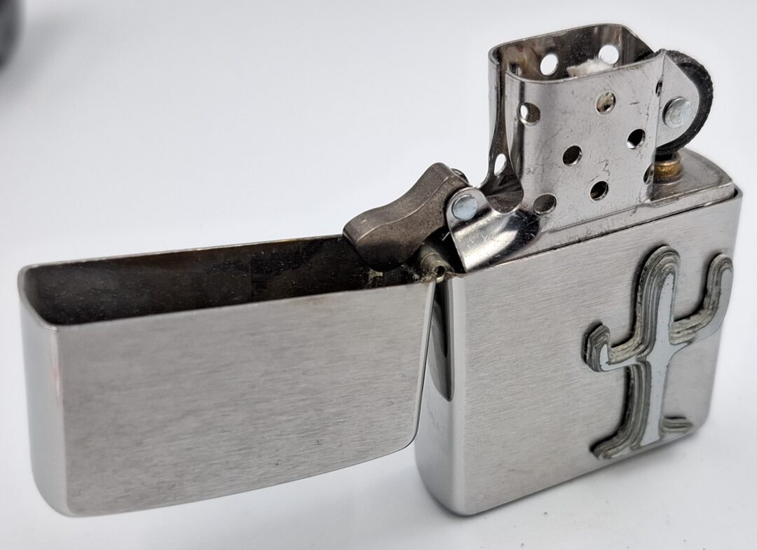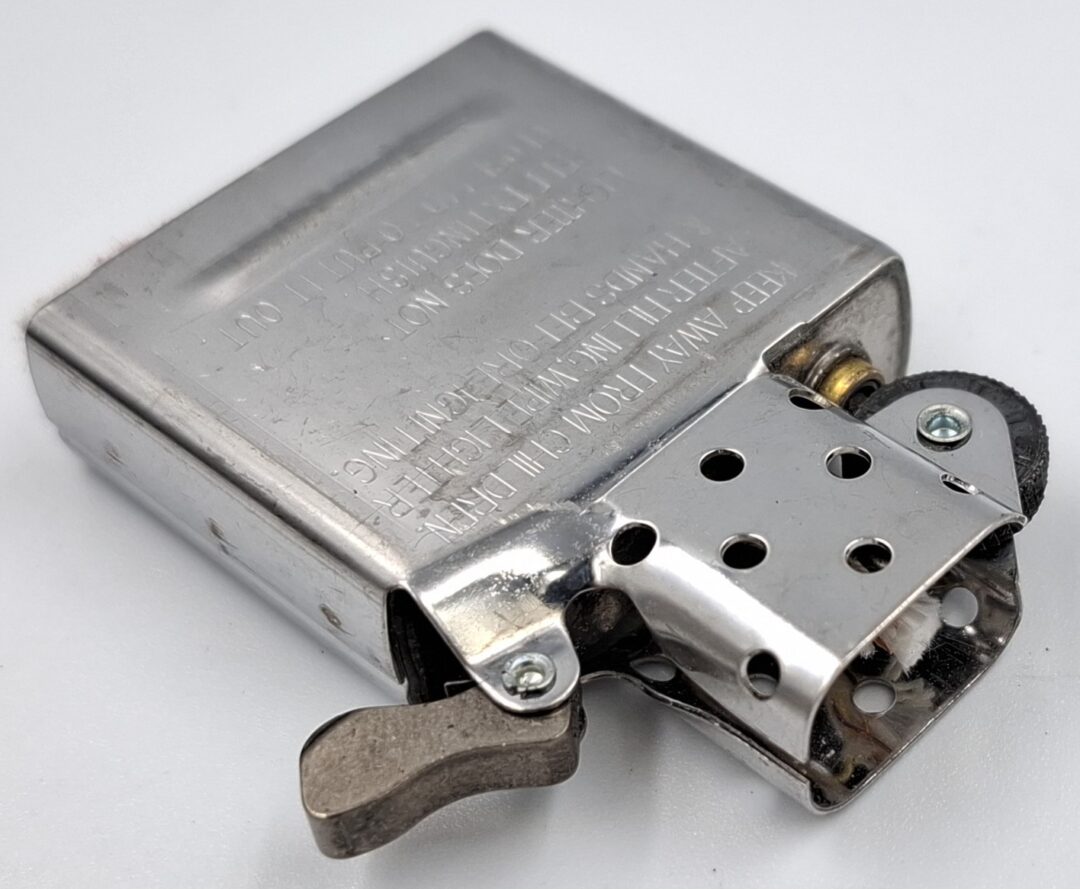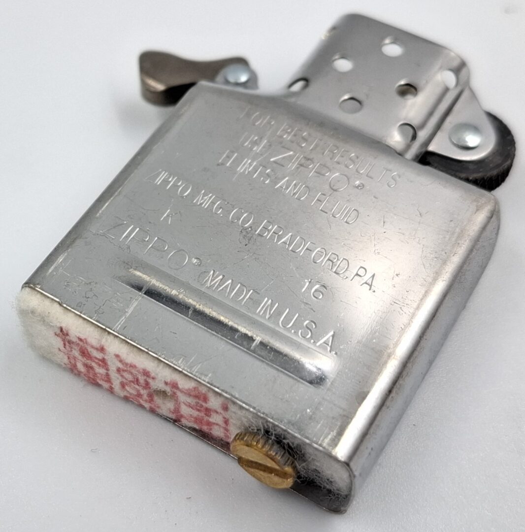 Zapalniczka nie działa. Mechanizm iskrzenia działa. Może posiadać braki i uszkodzenia. Datowanie wkładu to rok 2016.