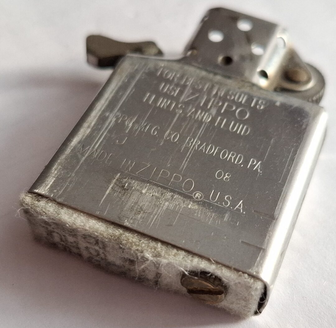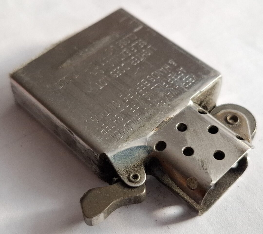Zapalniczka nie działa. Mechanizm iskrzenia działa. Może posiadać braki i uszkodzenia. Wkład jest z 2008 roku.