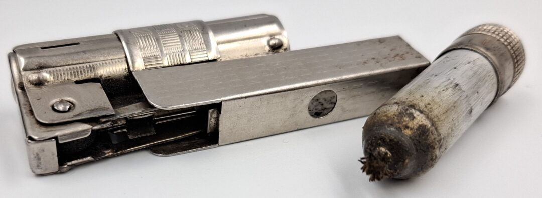 Zapalniczka nie działa. Mechanizm zapłonowy nie działa. Może posiadać braki i uszkodzenia. Zapalniczka z przeznaczeniem na części bądź do naprawy.