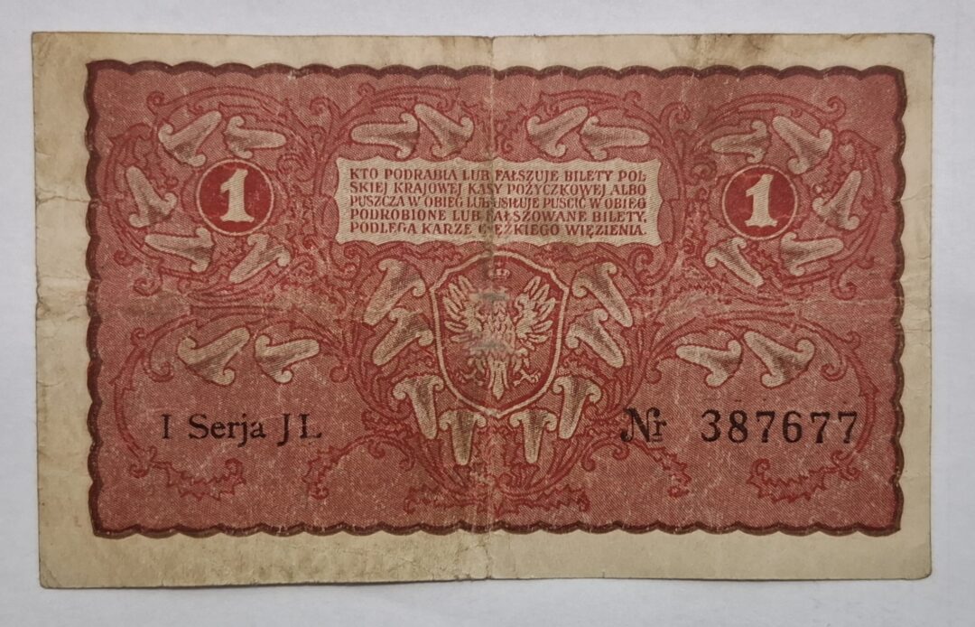 Stary Banknot kolekcjonerski 1 marka Polska 1919