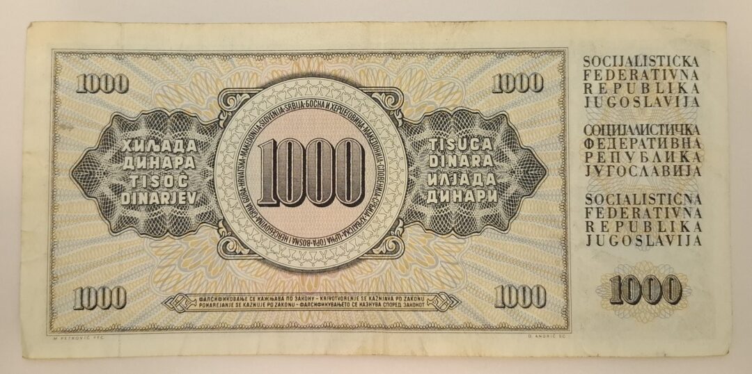 Stary Banknot kolekcjonerski 1000 Dinarów 1981 Jugosławia
