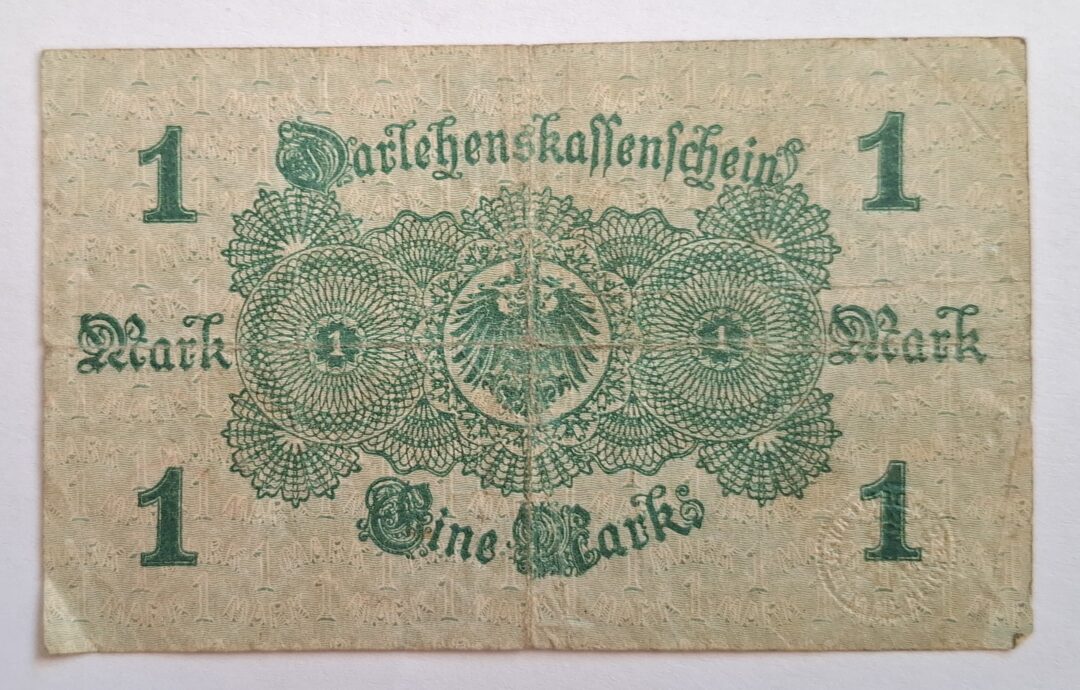 Oferta dotyczy banknotu 1 marek z 1914 roku widocznego na zdjęciach.