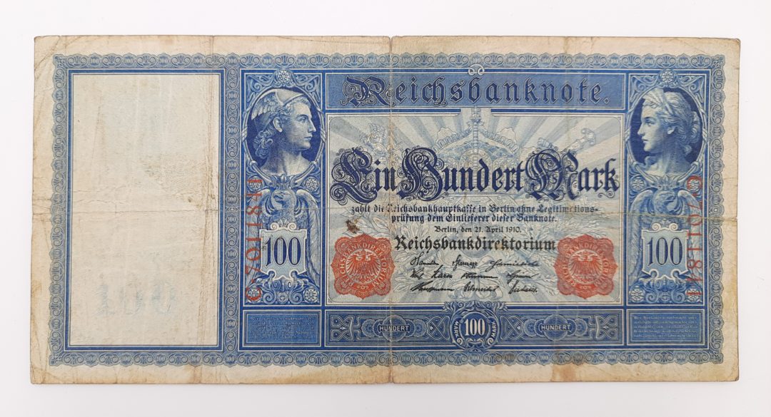 Oferta dotyczy banknotu 100 marek z 1910 roku widocznego na zdjęciach.
