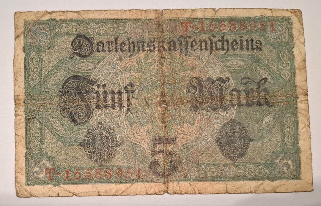 Oferta dotyczy banknotu 5 marek z 1917 roku widocznego na zdjęciach.