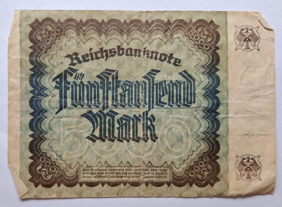 Oferta dotyczy banknotu 5000 marek z 1922 roku widocznego na zdjęciach.