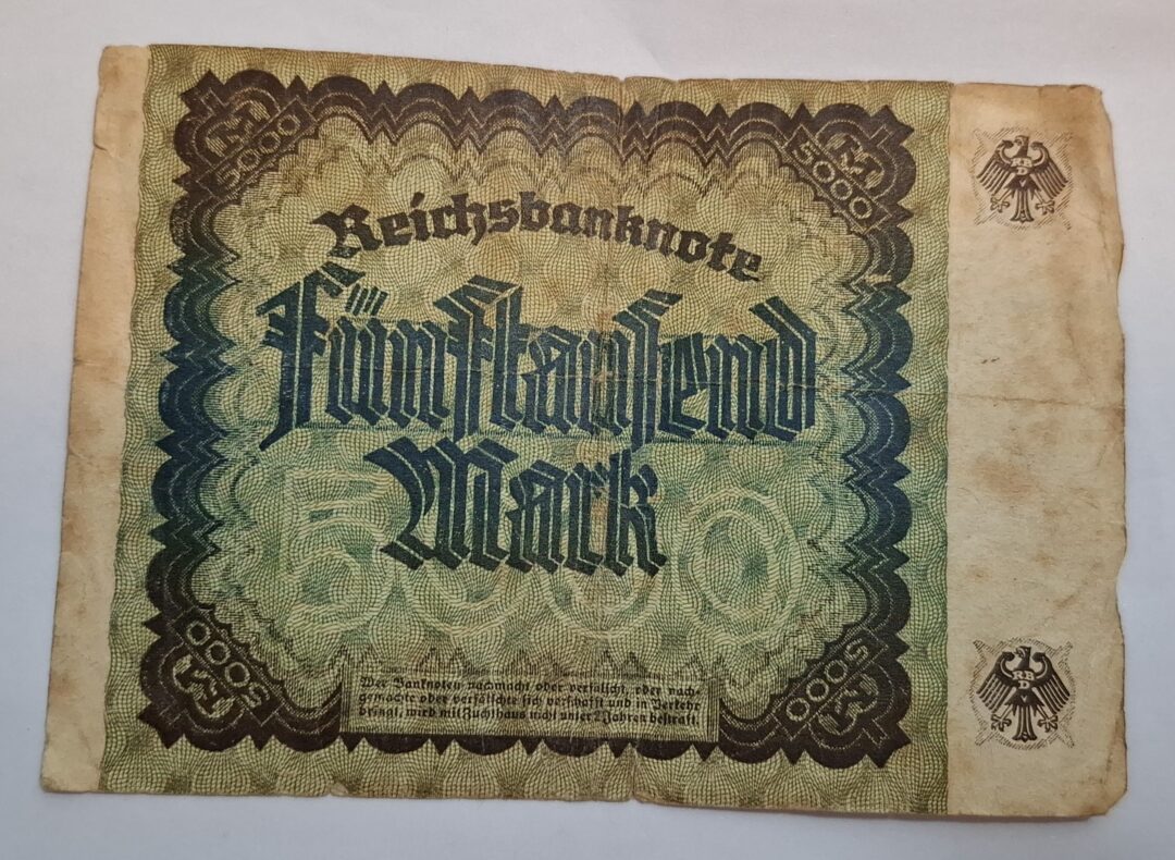 Oferta dotyczy banknotu 5000 marek z 1922 roku widocznego na zdjęciach.