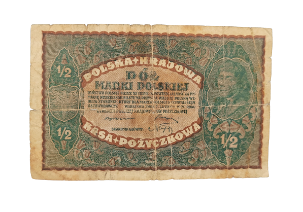 Stary Banknot kolekcjonerski pół 1/2 marki polskiej Polska 1920