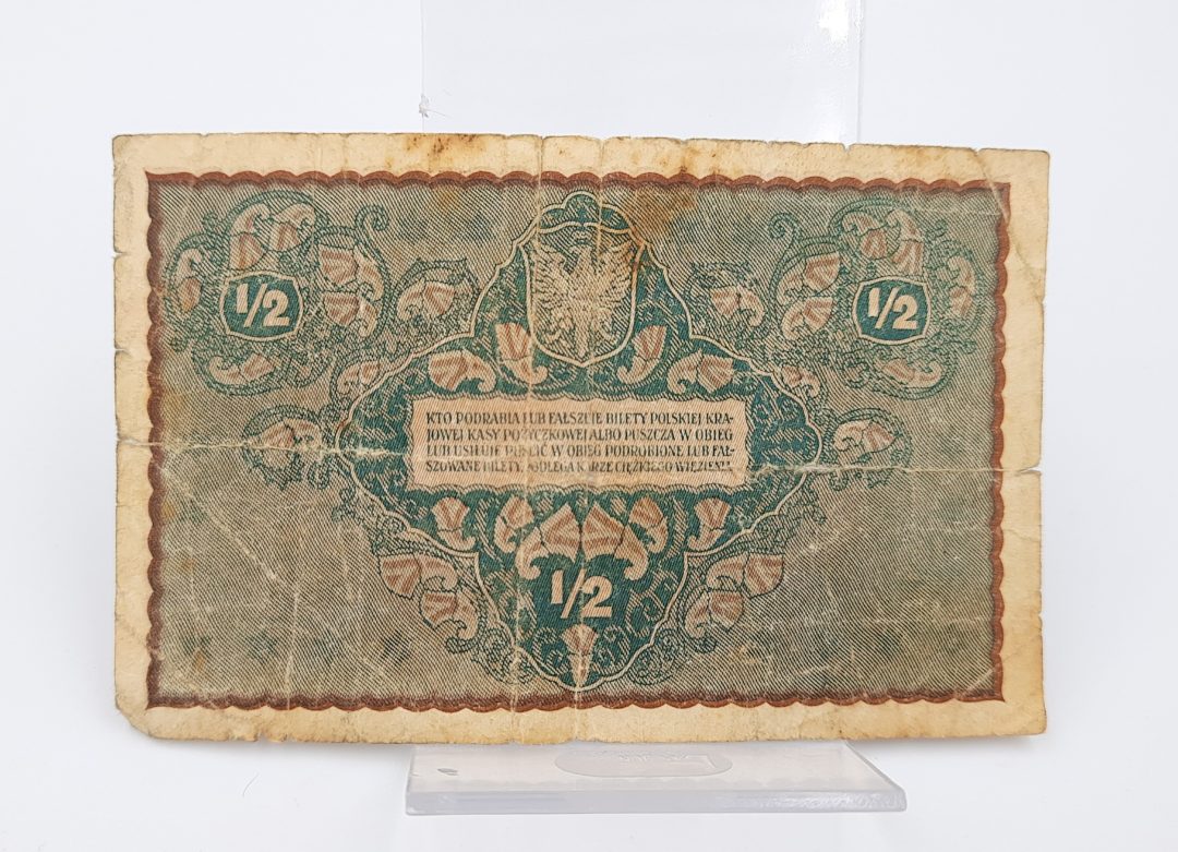 Oferta dotyczy banknotu 1/2 marki Polskiej z 1920 roku widocznego na zdjęciach.