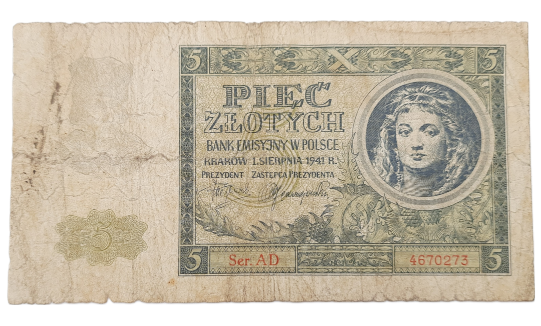 Stary Banknot kolekcjonerski Polska 5 zł 1941