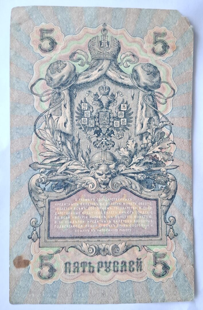 Stary Banknot kolekcjonerski Rosja 5 rubli 1909