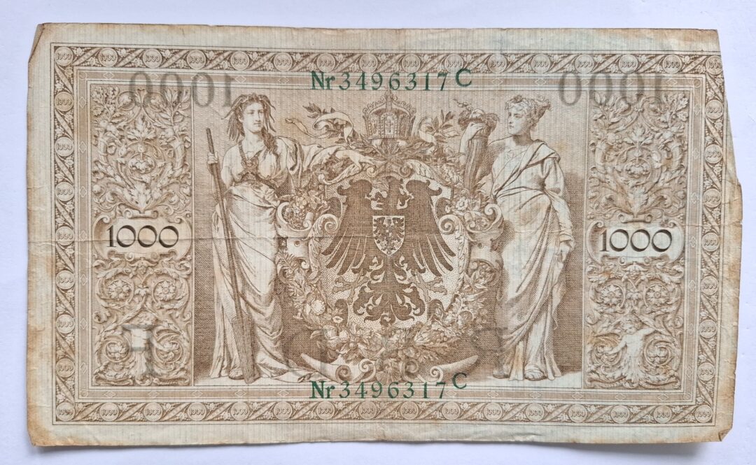 Oferta dotyczy banknotu 1000 marek z 1910 roku widocznego na zdjęciach.