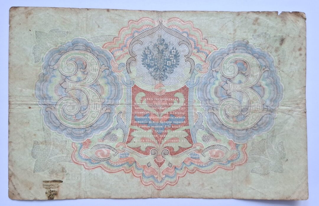 Stary Banknot Rosja 3 ruble 1905