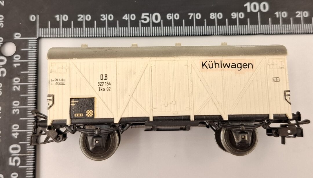 Oferta dotyczy wagonika firmy Marklin. Stan jest widoczny na zdjęciach. Może posiadać braki i uszkodzenia. Długość osi wraz z kołami to 2,1 cm. Natomiast długość samej osi to 1,4 cm.