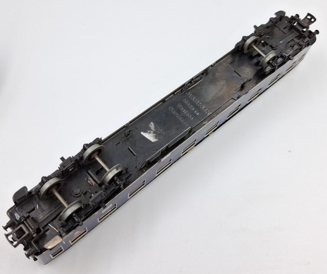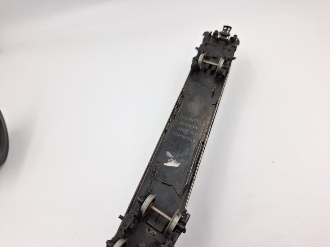 Oferta dotyczy wagonika firmy Marklin. Stan jest widoczny na zdjęciach. Może posiadać braki i uszkodzenia. Długość osi wraz z kołami to 2,1 cm. Natomiast długość samej osi to 1,4 cm. Brak jednego zestawu kół.