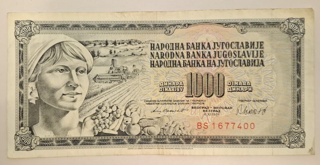 Stary Banknot kolekcjonerski 1000 Dinarów 1981 Jugosławia