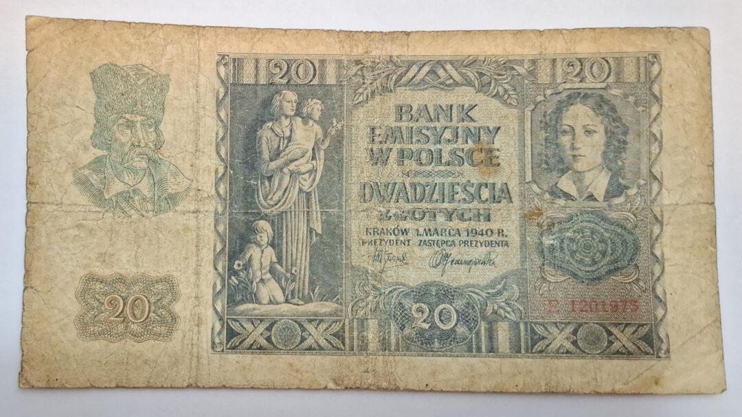 Stary Banknot kolekcjonerski Polska 20 zł 1940