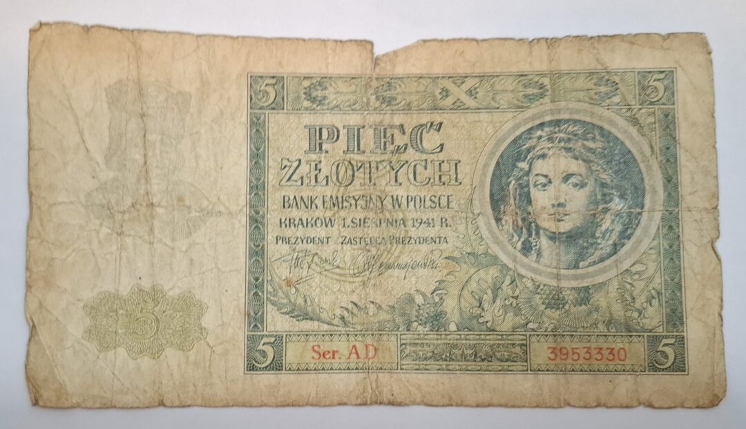 Stary Banknot kolekcjonerski Polska 5 zł 1941