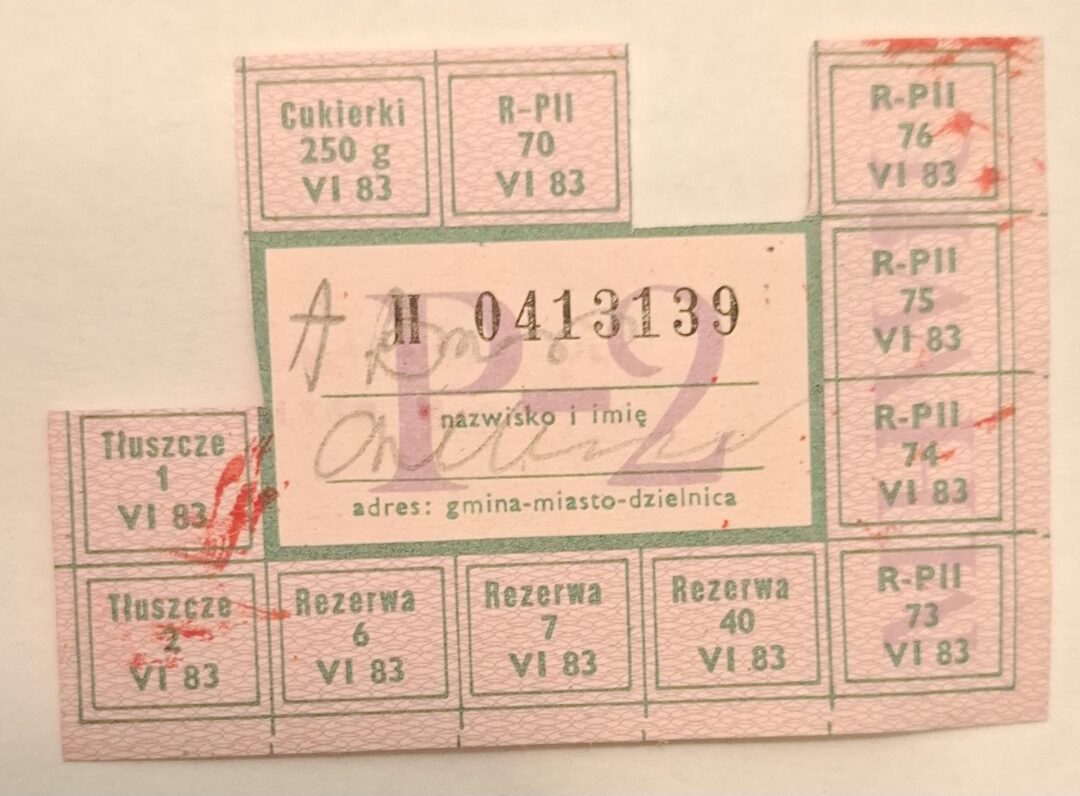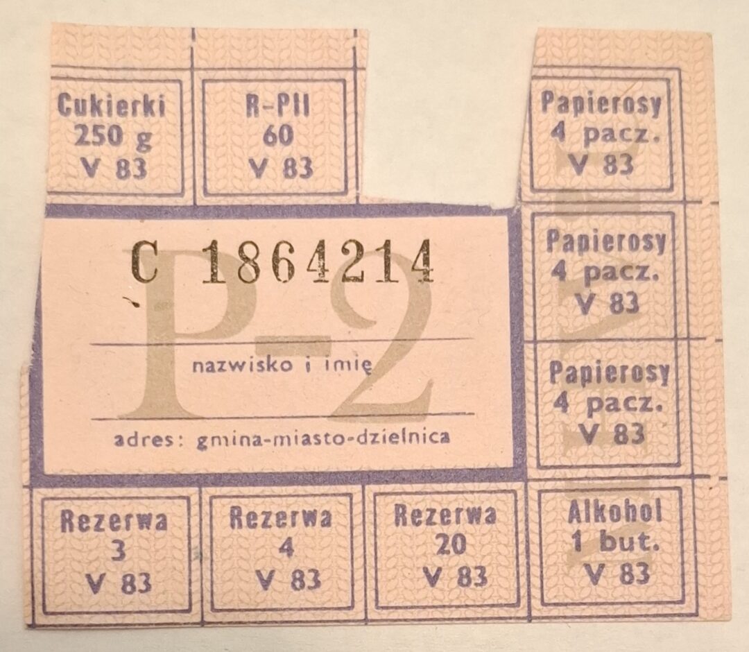 Stara kartka żywnościowa zaopatrzeniowa z PRL